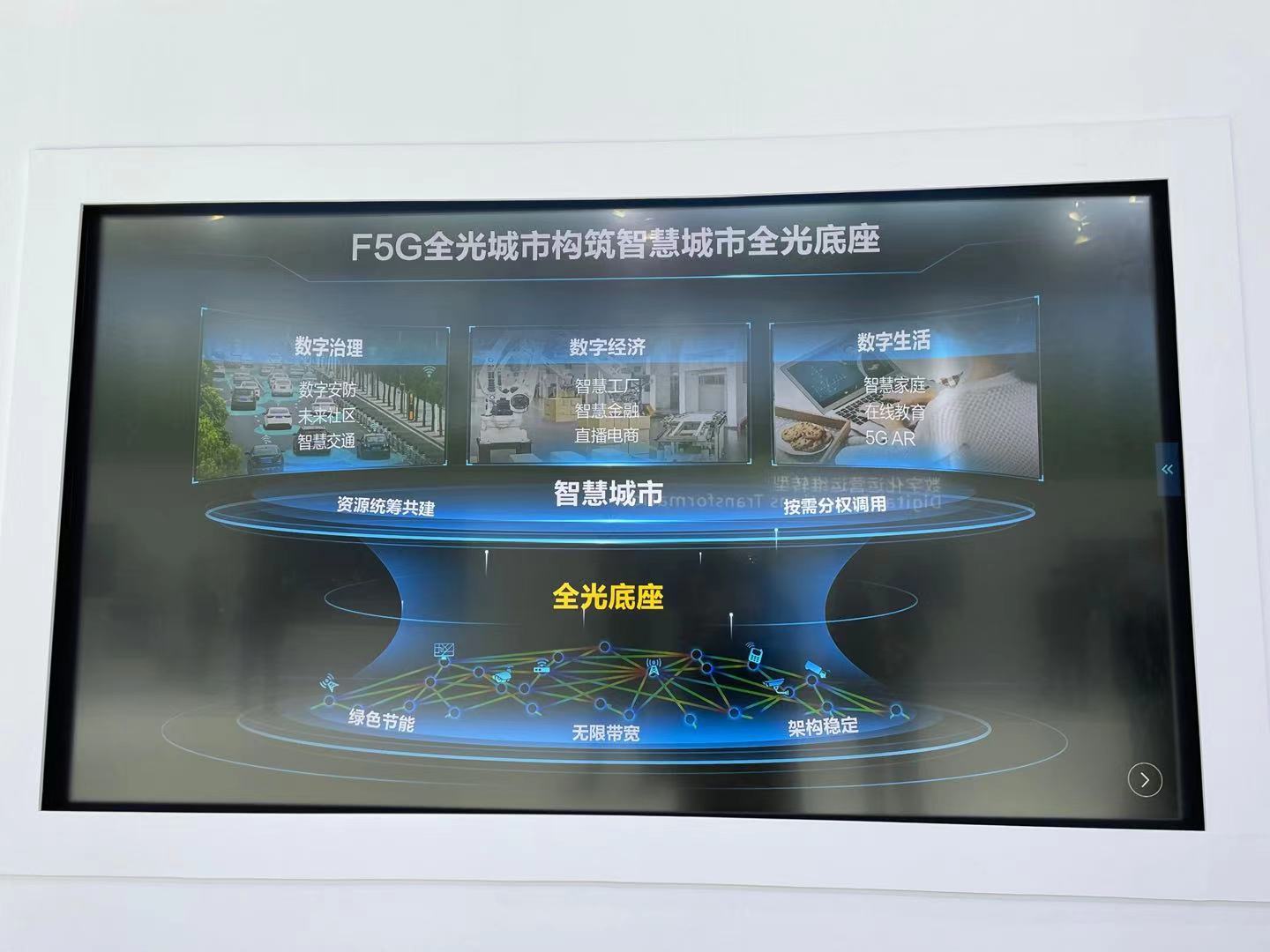 MWC华为展台的现场工作人员介绍,F5G可以广泛应用于智慧城市的各类场景。华为作为设备提供方,基于F5G构建的全光网络底座,可以帮助运营商更好地为政企、家宽市场提供更稳定的网络服务,提升用户体验。