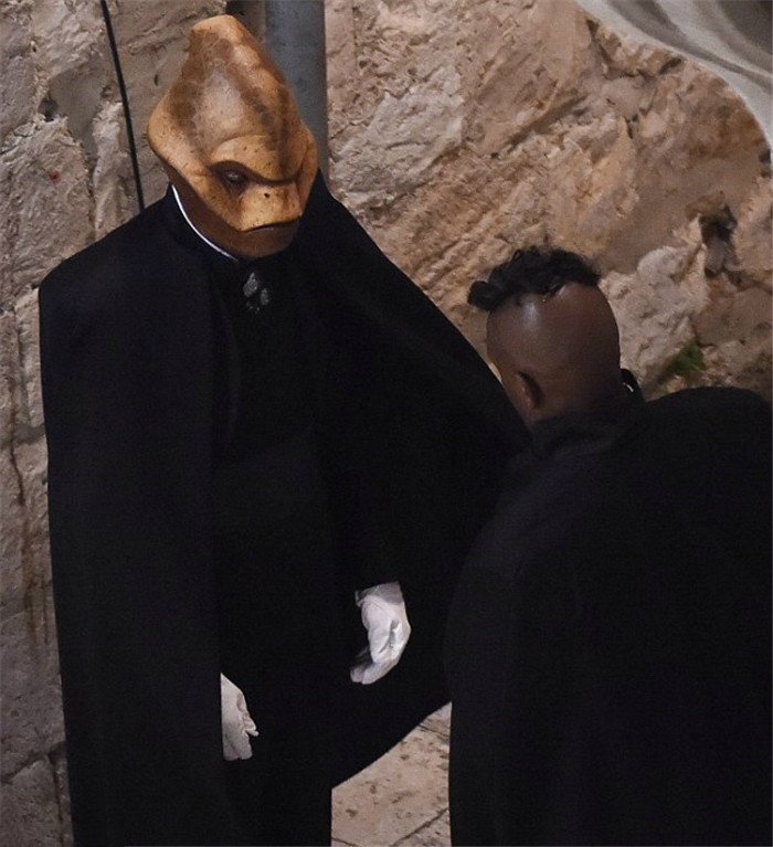 在石墙后和一些小巷子里,可以看到演员穿着东方式服装——让我们想起纳布贵族和科洛桑精英在此前的电影中的装扮。