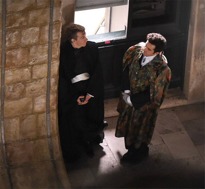 有人发现其中一个身穿白袍、面带东方道具的演员也在闲聊。