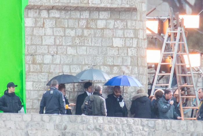 突下大雨的坏天气并没有影响到演员们的拍摄,饰演人类和外星人的演员都选择雨伞和遮蔽物避雨。