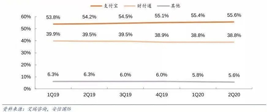 中国数字支付市场份额(按交易规模计)