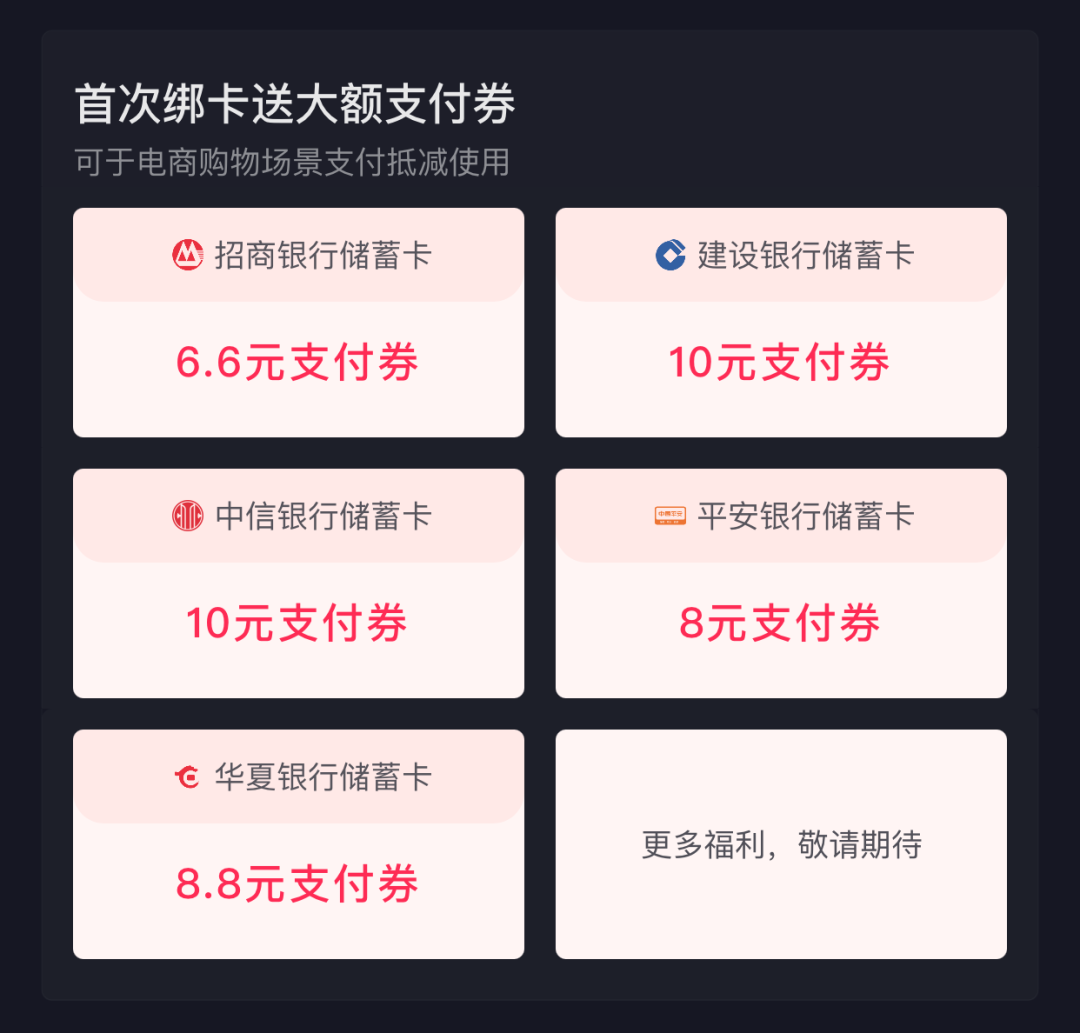 抖音绑定银行卡送支付券