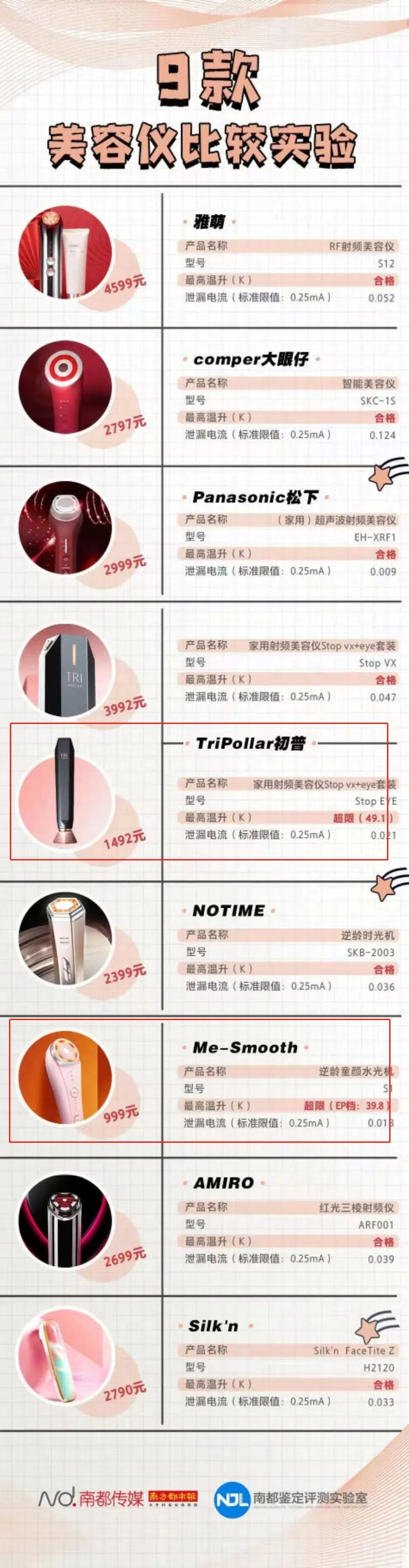 TriPollar初普陷“高温烫伤门”的导火索便是南方都市报开展的一项家用美容仪产品的检测。