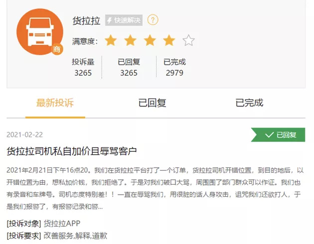 货拉拉平台主要做拉货生意,注册人员多为中小型面包车、小型厢货、小型平板、中货车等车型的司机,不可否认的是,其整体素质要低于客运共享平台的人员。如果让这些司机们在“陌生社会”里“慎独”,显然是不可能的事情。所以,骚扰、谩骂、随意涨价等事件才会不断发生。