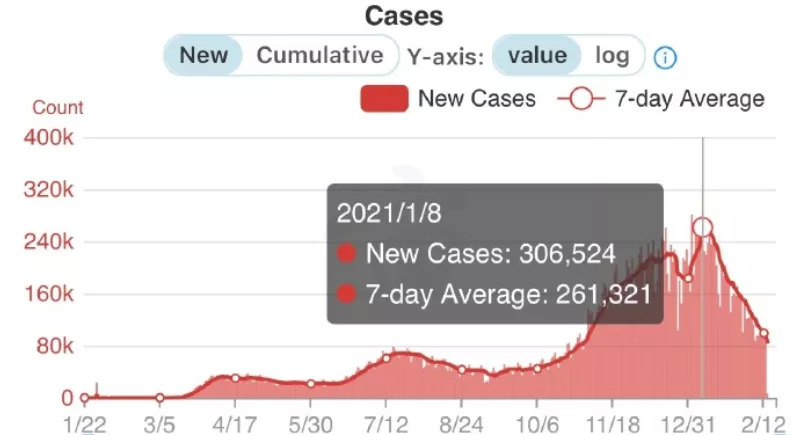 但事实上,相较于日新增病例最高峰的30万(1月7日),到现在的6万,日新增的降幅已经达到了80%。“拐点”出现!