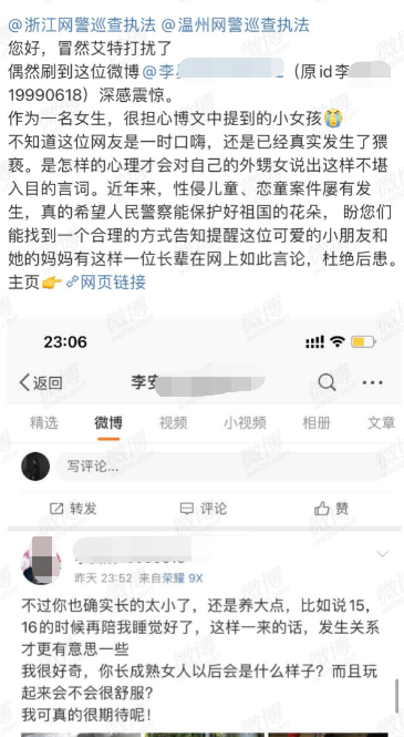 通报称,李某某对博取网民关注、获取流量,在微博发布侵犯他人人格尊严的违法行为供认不讳。另查明,李某某近期还发布其他违法言论,已造成恶劣的社会影响。目前,李某某因涉嫌寻衅滋事罪被警方依法刑拘。