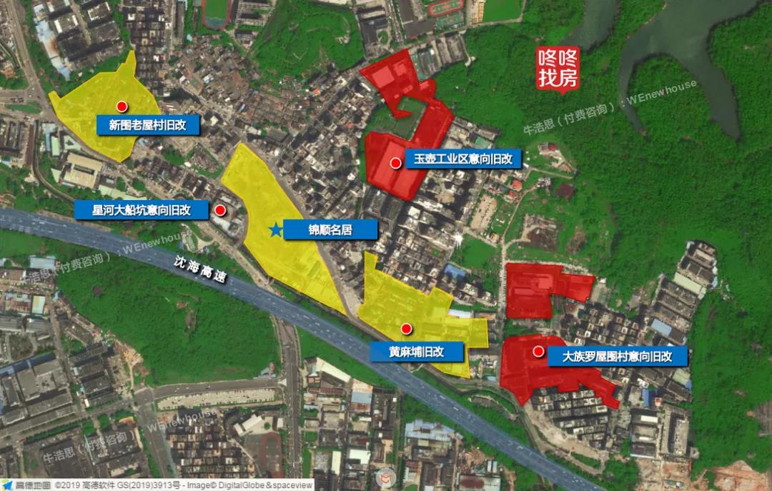 项目周边的待旧改项目较多,距离较近的有新围老屋村旧改、黄麻埔旧改、星河大船坑意向旧改、玉壶工业区意向旧改、大族罗屋围村意向旧改。