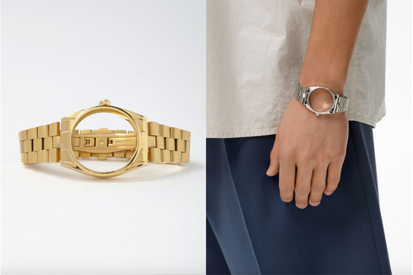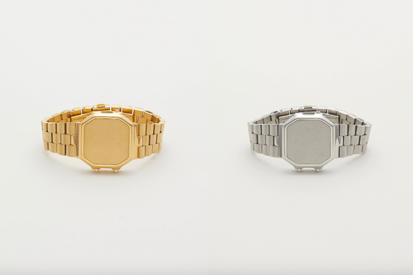 这次,AMBUSH又带来了一款不能看时间的“手表”,其中间的钟表部分被拿走,只剩下表框和表链。这款手链因此被命名为永恒表带手链Timeless Watch Bracelet。该系列含两种款式设计,一款为圆形表盘手链,另一款仿照的是电子表型。材质为不锈钢,均含金、银两色选择,目前还处于预售阶段。
