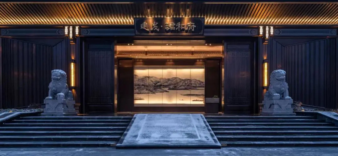项目延续了建发新中式的风格,采用了中国式的王府大门,展现了唐朝盛世最恢宏典雅的风仪,大气又不失婉约。