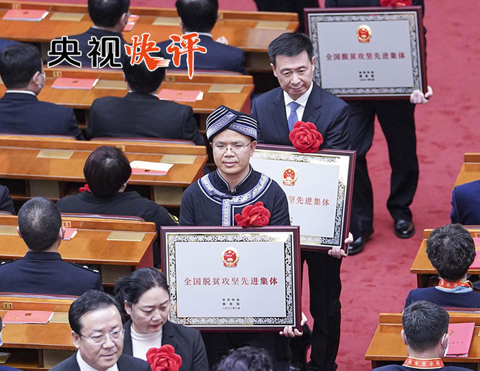 2月25日,全国脱贫攻坚总结表彰大会在北京举行,习近平总书记发表重要讲话。总书记庄严宣告,我国脱贫攻坚战取得了全面胜利,现行标准下9899万农村贫困人口全部脱贫,832个贫困县全部摘帽,12.8万个贫困村全部出列,区域性整体贫困得到解决,完成了消除绝对贫困的艰巨任务,创造了又一个彪炳史册的人间奇迹!