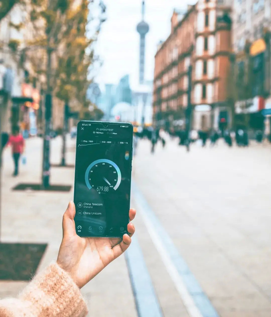 在上海的中心城区,5G几乎步步都有。根据《IT时报》记者测试,即便站在南京路步行街人流最密集的中心地段,5G下行速率仍可以达到近700Mbps,上行速率可达近100Mbps;在人头攒动的外滩,5G下载速率约500Mbps,上传速率高达102Mbps。