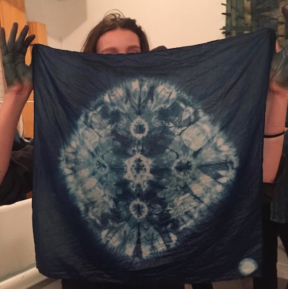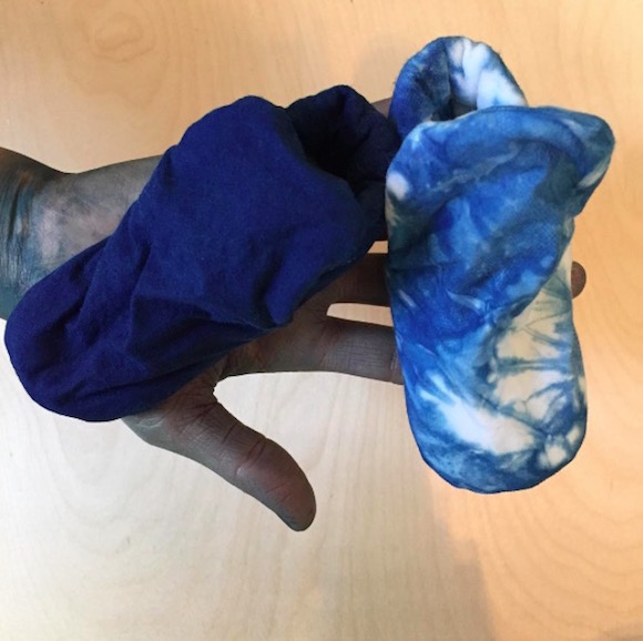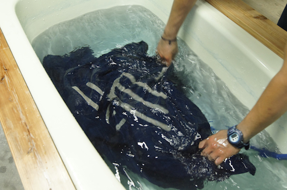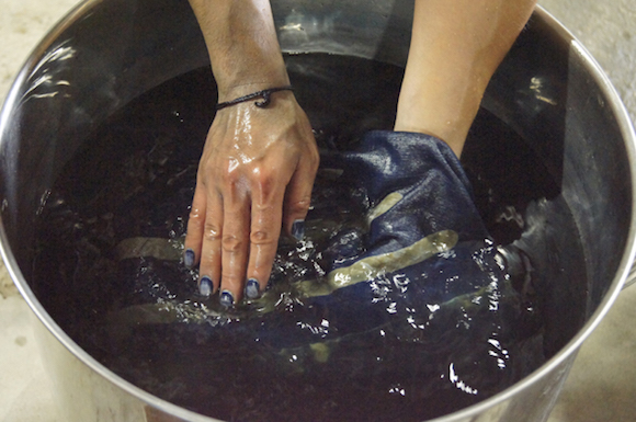 染色完成后将布料浸入温水,把浆糊洗掉。