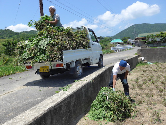 尽管被赋予了“新时代的蓝染职人”称号,但工作室里的四个年轻小伙子其实大部分时间都在种地。除草、浇水、驱虫、施肥……从播种到收割,种植这种日本称作“蓝叶”(虽然看起来是绿色的)的作物需要花上一年的时间。