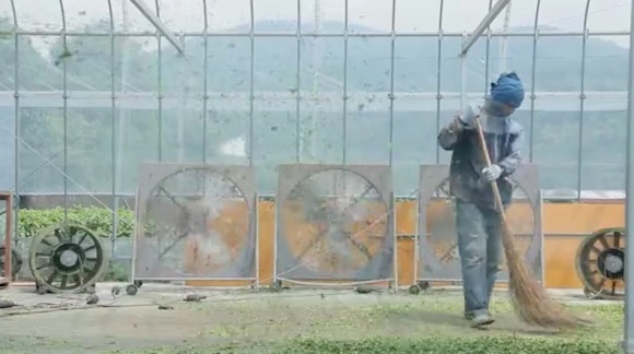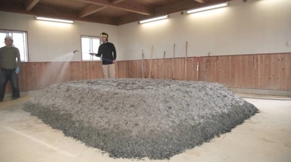 接下来是发酵。这个过程要持续120天,每周往发酵堆里加一次水: