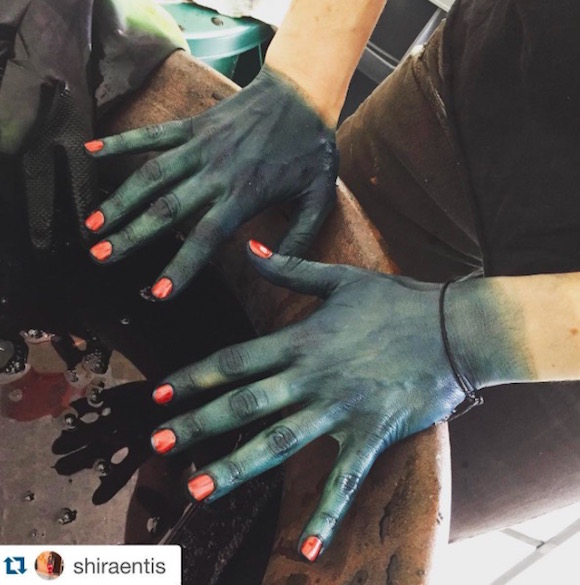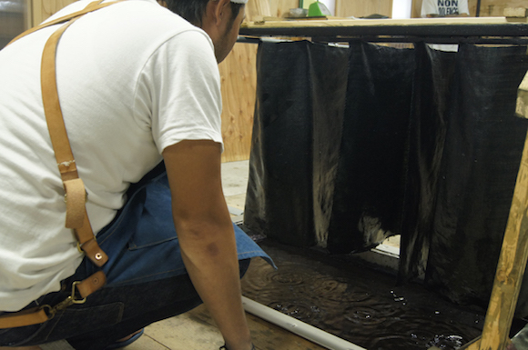 染料粘上纤维,和空气接触后发生氧化,颜色在布料上沉淀下来。这个过程需要重复2至3次。而根据温度、湿度和布料的不同,染色次数需要随时调整。