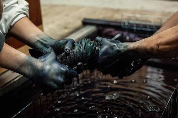 在最辉煌的时期,德岛县种植蓝叶的作坊曾多达2000家。随着化学染料的流行,作坊相继关张,现在只剩5家了。虽然日本各地仍然不乏坚持天然蓝染的染坊,但他们的染料几乎都来自这么屈指可数的几家作坊,染出来的颜色自然也就大同小异。