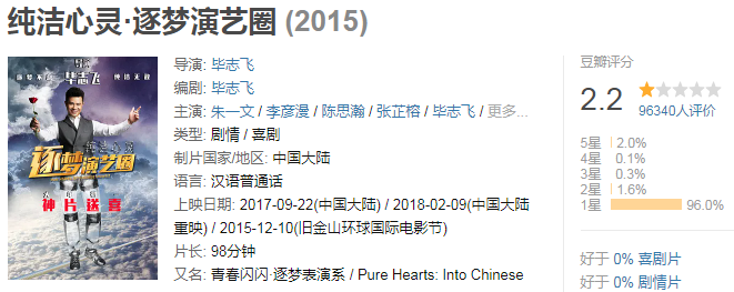 有趣的是,此前导演毕志飞因《逐梦演艺圈》遭差评起诉豆瓣,近日北京法院审判信息网公示,导演毕志飞起诉豆瓣侵权一案一审宣判,毕志飞要求豆瓣公司道歉等诉求未获法院支持。
