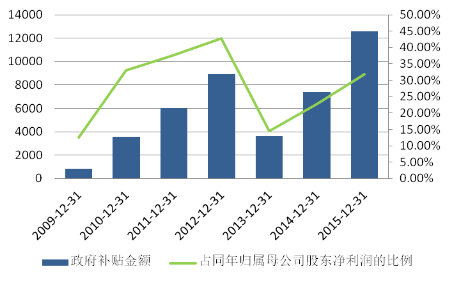 上述情况还是在公司每年政府补贴金额逐年上升的背景下发生的。