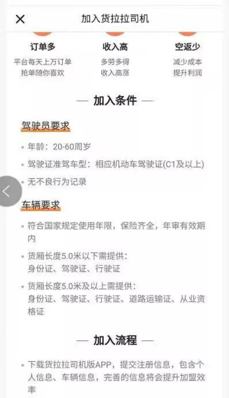 在货拉拉平台司机的审核机制上,加入条件仅仅为具有相应机动车驾驶证。而对于司机的个人素质综合考评,对于是否具有营运证,是否合规运营,都没有进一步要求。