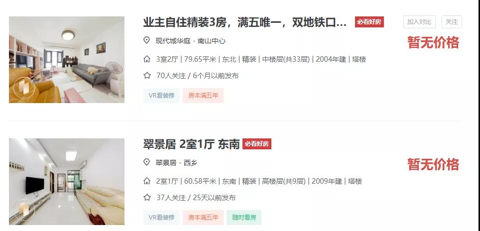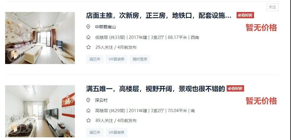 而链家和贝壳找房目前仍然显示“暂无价格”。