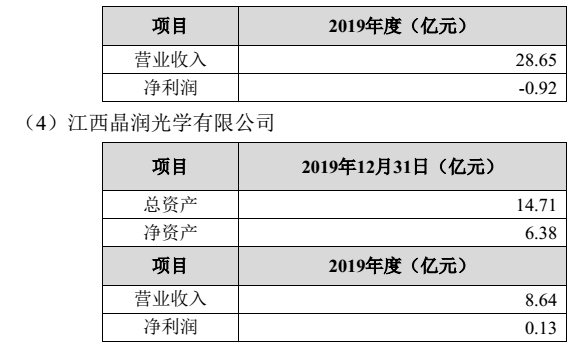 截至2019年年末,四家公司合计总资产超113亿元;2019年合计营收113.62亿元,占欧菲光当年总营收的21.86%;涉及净利润合计0.18亿元,占欧菲光2019年盈利额5.1亿元的3.5%。