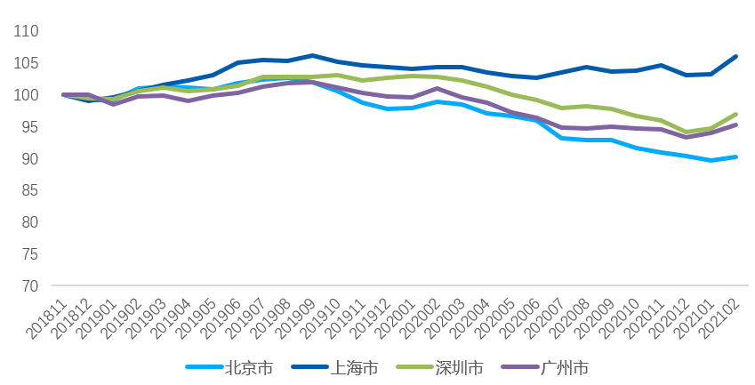 在四个一线城市中,北京2月租赁市场表现相对较差,但量价均有所抬头。