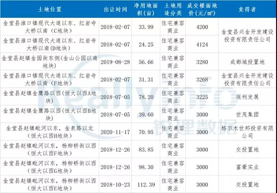 (金堂楼面地价达到3000元/㎡+地块)来源锐理