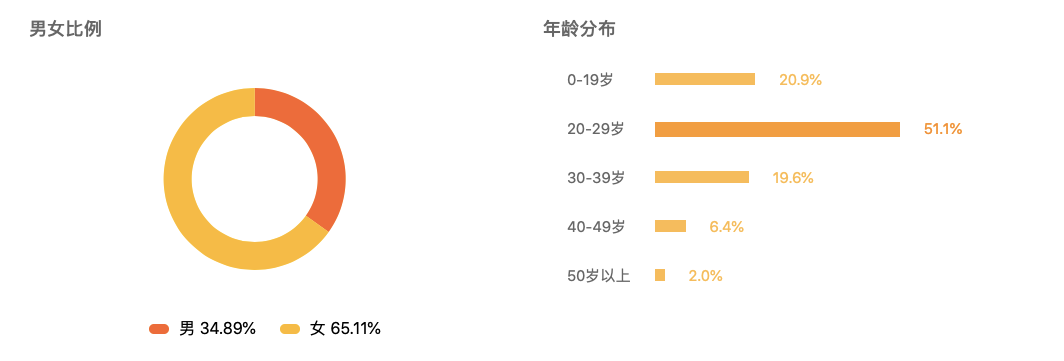 根据骨朵的受众分析,两档节目的用户构成差距不大。女性占比近用户总数的三分之二,20到29岁的年轻人是节目观看的主力军,这群用户正是“三百秀粉”。