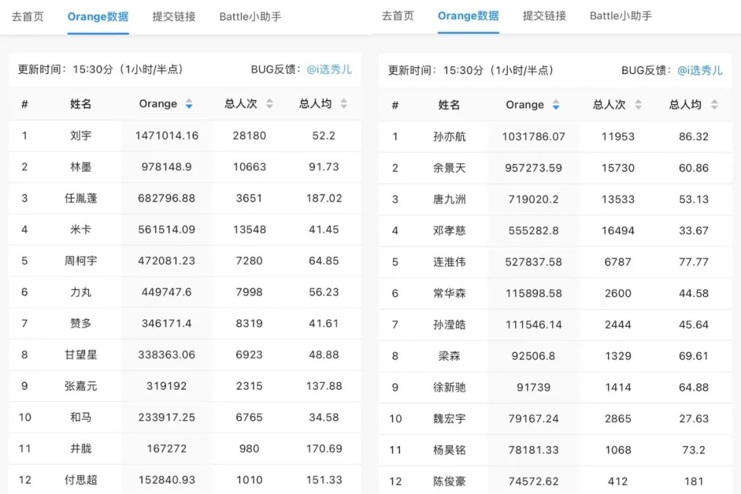 节目播出后,不少用户变身粉丝,为爱投票。截止今日15:30,橘子榜(粉丝集资榜单)上,《创造营2021》的选手刘宇目前集资金额及参与人次排名第一。以两档节目粉丝整体的集资金额和总人次来看,《创造营2021》的粉丝盘更大。而相比于《青春有你2》及《创造营2020》,今年单个选手的粉丝集资金额达百万的速度也远超去年。一定程度上证明了男团选秀的吸金能力。
