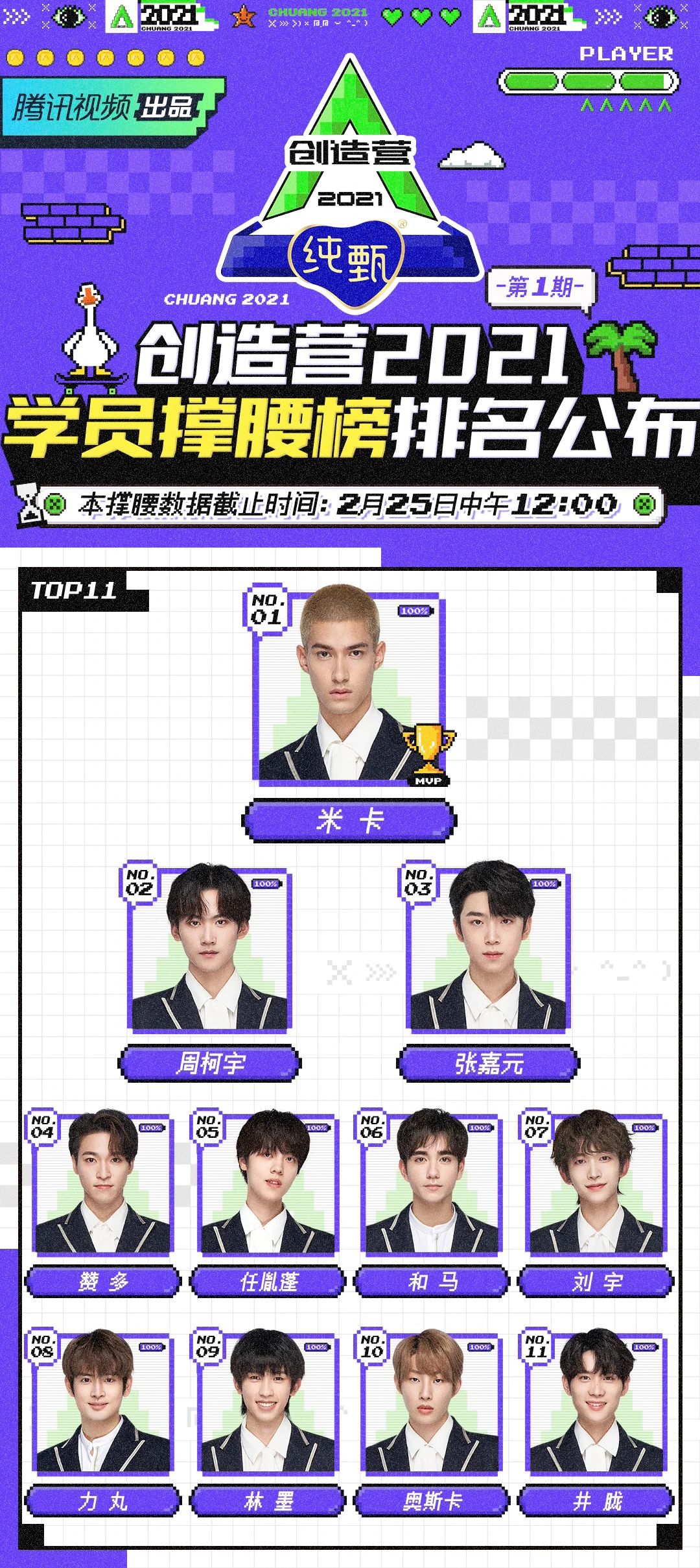 或许是国内练习生资源早已被前三年的选秀节目耗尽,《创造营2021》直接在前期宣传中便提出要打造国际化男团,90位选手中有一共有23位海外选手。这些海外选手也带给了用户不少惊喜,米卡、力丸、赞多等海外选手在实力上对大量国内选手进行了降维打击。截止2月25日中午12:00,《创造营2021》的学员撑腰榜中,进入前11位的一共有5位海外选手,排名第一的是来自夏威夷的米卡。