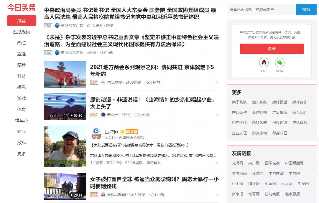 今日头条界面,图源今日头条官网