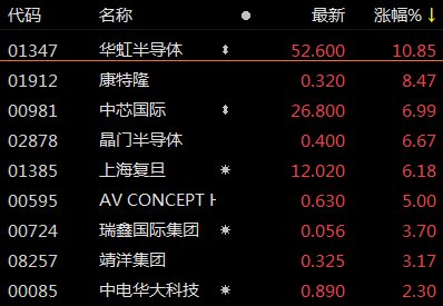 港股半导体概念板块也整体走高,截至3月1日收盘,华虹半导体(01347.HK)涨超10%,康特隆(01912.HK)、中芯国际(00981.HK)、上海复旦(01385.HK)、晶门半导体(02878.HK)等股价涨超5%。