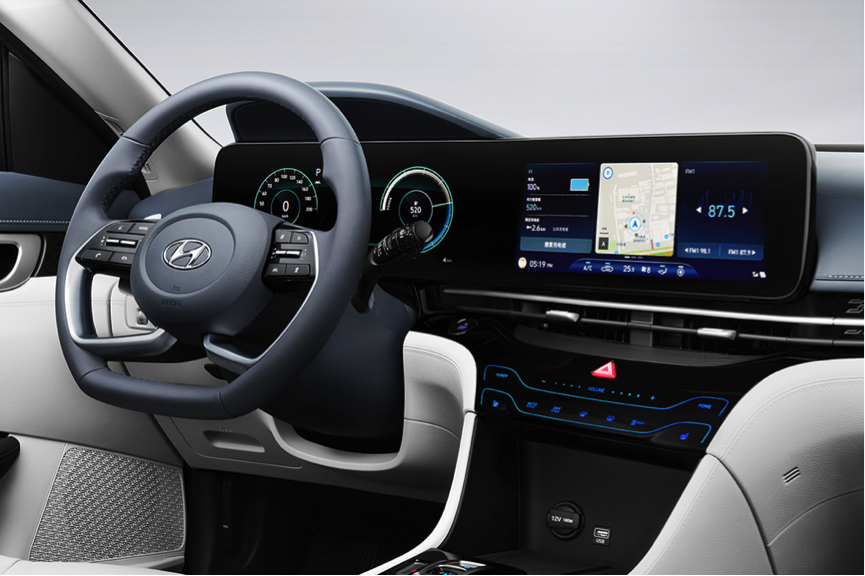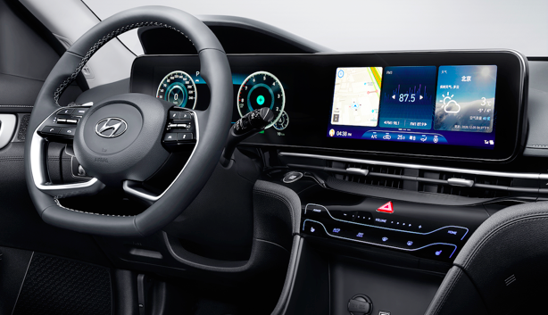 全新一代名图采用了“泛湖新境”内饰设计理念,为车内营造出高级格调。车内采用了大面积的撞色设计和皮质座椅、软质材料、钢琴烤漆等装饰,并配备了12.3英寸中控显示屏+12.3英寸液晶仪表盘组成的超大智慧连体屏。