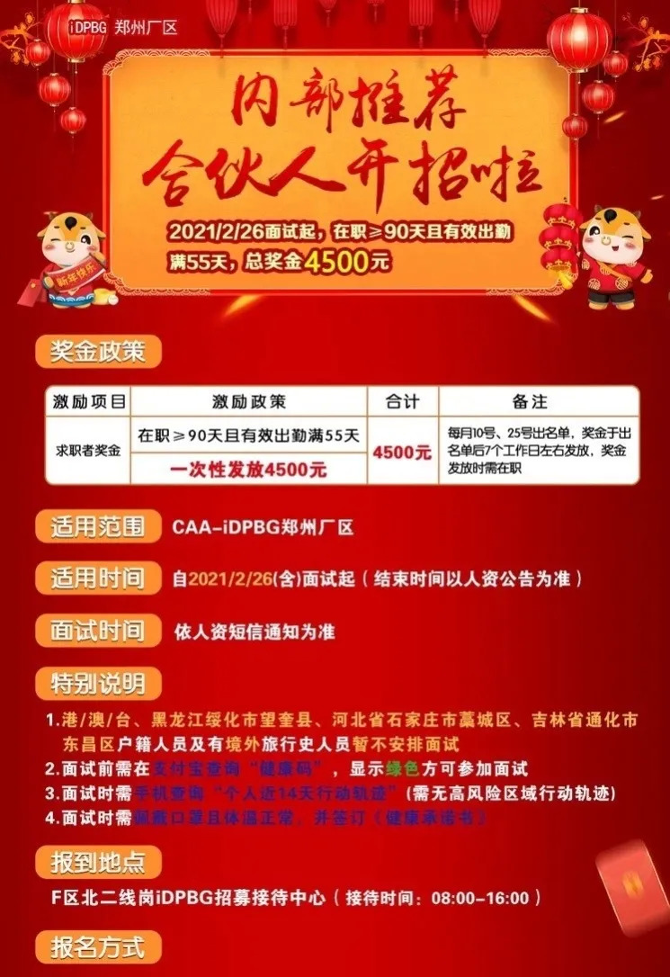 据公众号“郑州FOXCONN招募中心”,富士康郑州厂区从2月26日开始招工。
