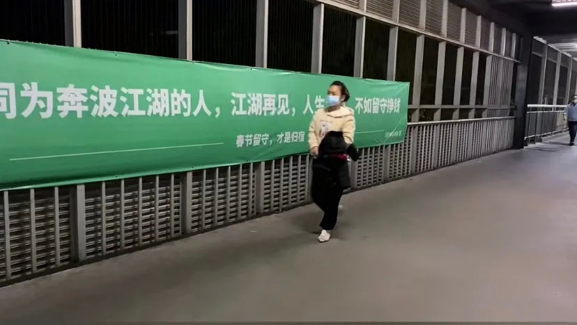 王琪在富士康南方某厂区工作,她发现厂区在年底多了一些标牌和横幅,“今年过节不回家,春节出勤赚钱花”“这个春节,公司养你”。冲着奖励,她也决定留在流水线上过年。