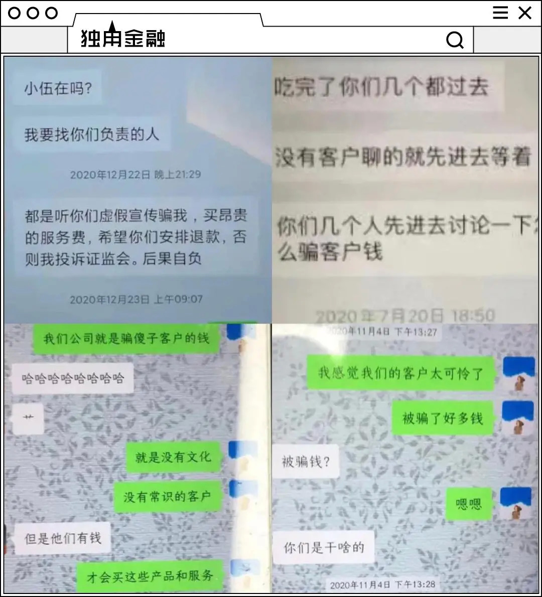 “我们公司就是骗傻子客户的钱,没有文化没有常识才会购买这些产品”;