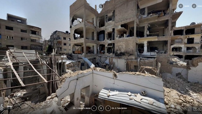 在这个3月12日新成立的网站360Syria.com 上,你只需要戴上VR眼镜,就可以真切的去感受叙利亚的爆炸场景,以及阿勒颇(叙利亚西北部城市)在震后遭到的惨烈破坏。