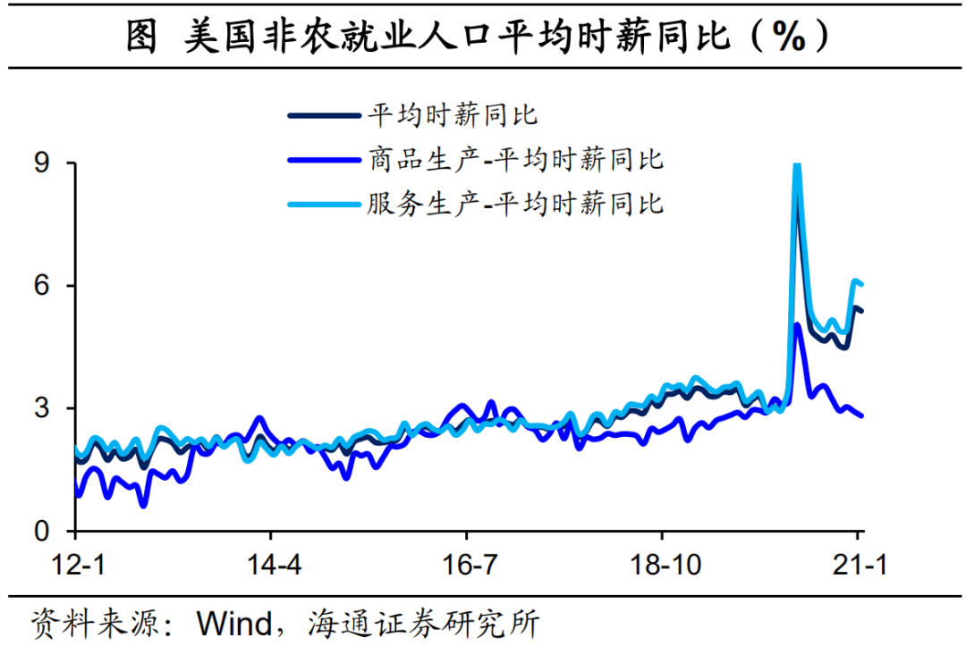 失业人口主要为低薪人员。去年美国非农就业人员平均时薪同比为4.8%,创历史新高,尤其是服务业平均时薪同比上升为5.2%,且在去年4月一度高达9.0%的增速。