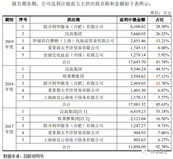虽然公司一再声明,经营业绩不依赖于品牌方的返利,但对前五大供应商的高度依赖让这个事实更加明确。供应商有很大的话语权,返利的不确定进而成为影响公司稳定盈利的隐患。