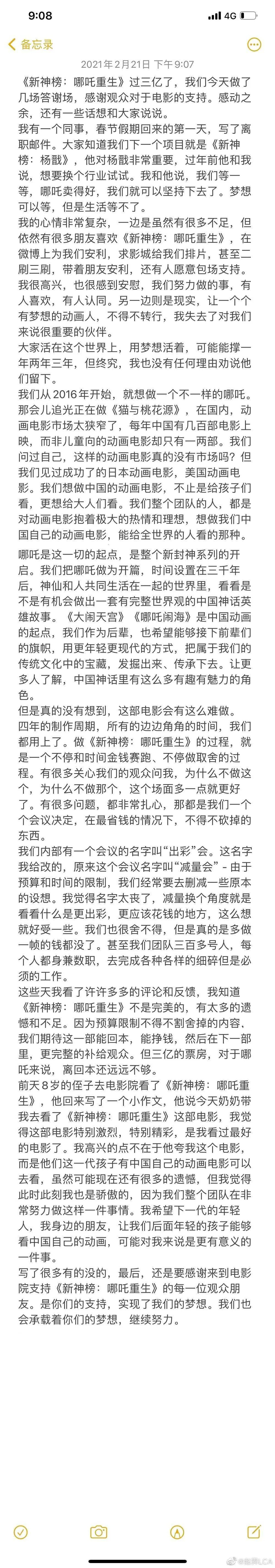 导演长文中提到,3亿票房远远不够回本,制作团队有三百多号人还需要身兼数职。4年制作周期、300多号员工,但是制作资源配置仍然不够充沛,说明动画制作过程中需要反思的问题还很多。