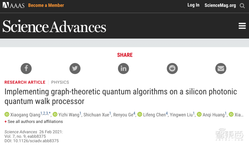 这项研究名称为《在硅光子量子行走处理器上实现图论问题的量子算法求解(Implementing graph-theoretic quantum algorithms on a silicon photonic quantum walk processor)》。