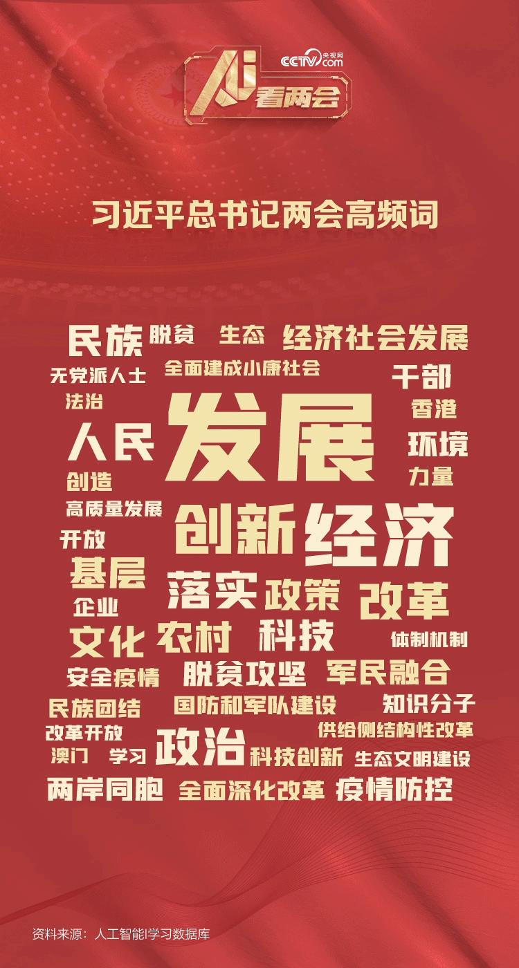 央视网人工智能编辑部依托人工智能I学习数据库,梳理了习近平总书记8年46次“下团组”的相关报道,归纳了总书记“两会时间”的讲话高频词。