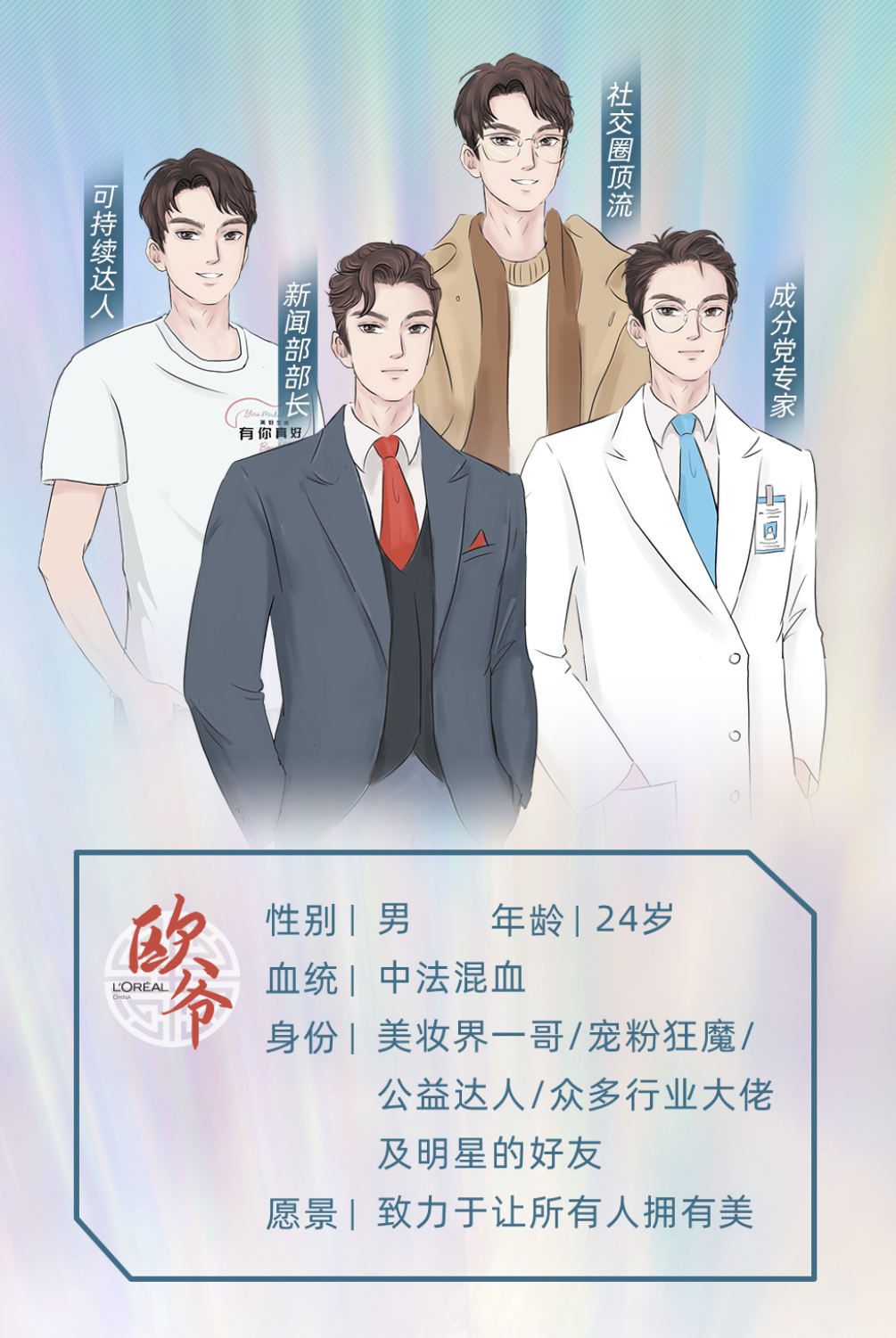 如果没有文字介绍,人们或许不会意识到眼前这四位“拥有中法血统”的二次元人物,会负责欧莱雅集团在中国的新闻发布和社交媒体运营等业务。