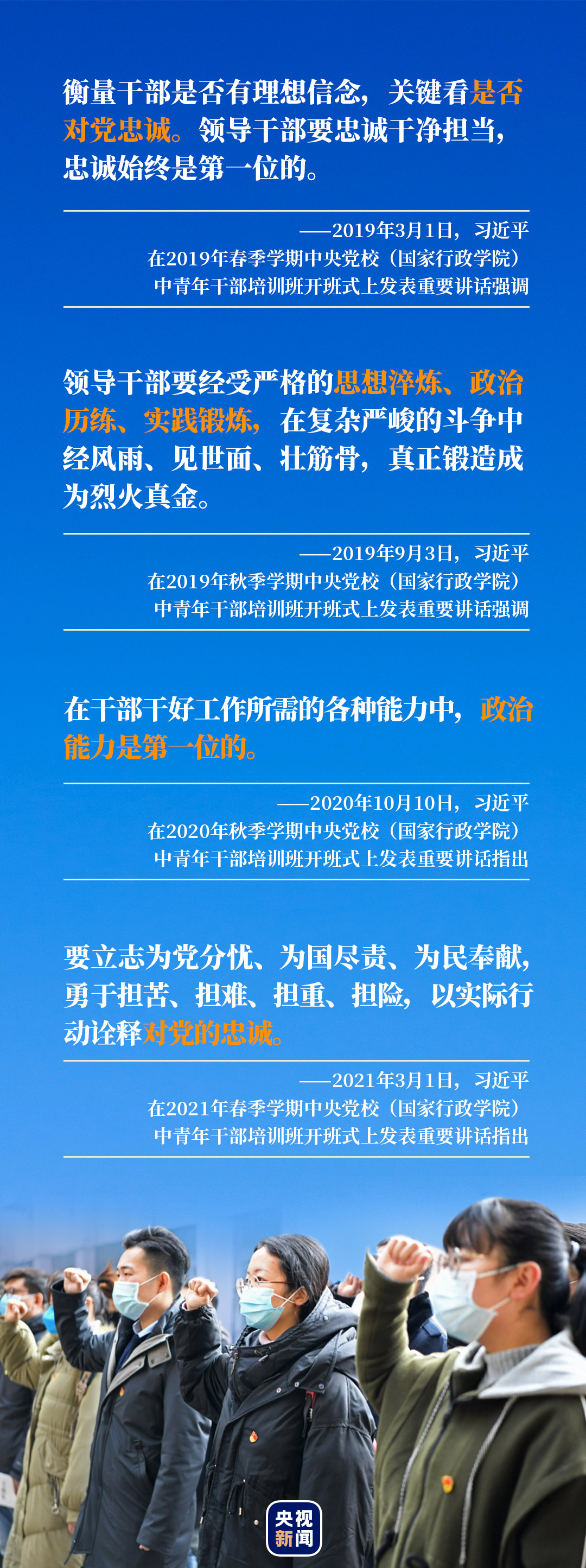 对党忠诚、提高政治能力是总书记在近几年中青年干部培训班开班式上授课的关键词。