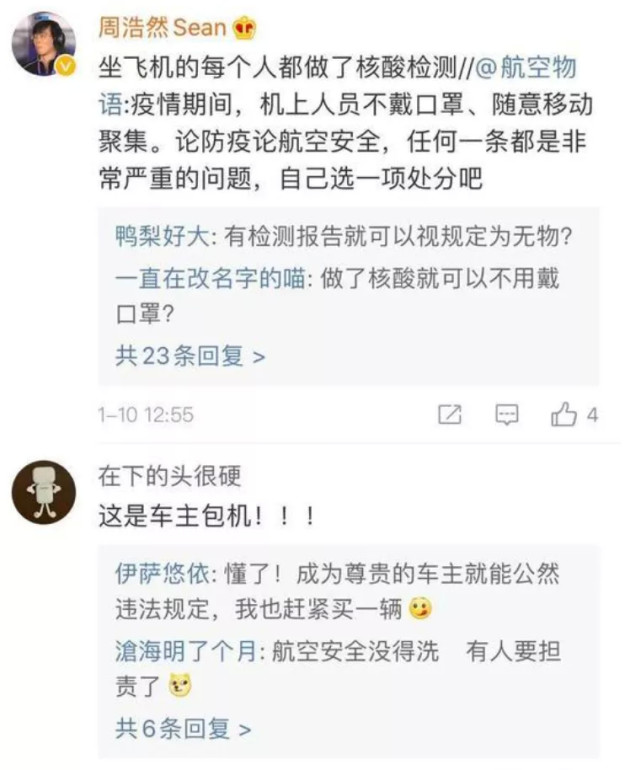 此外,2021年1月,有网友发布视频称,约100名蔚来车主包机国航CA4338航班,前往成都参与蔚来NIO DAY发布会,车主们在机舱内不戴口罩,跟随音乐唱唱跳跳,不当行为引发热议。