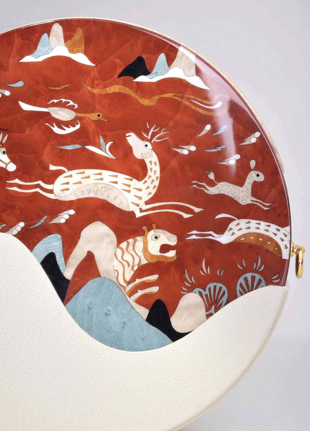 而端木良锦的包袋还有个特点是均采用了中国元素的主题花纹。比如,端木良锦的第一款主题花纹——花钿纹是借鉴了唐代紫檀木画槽琵琶上的花纹。现在,端木良锦的主题花纹还包括敦煌团花纹、飞鸟缠枝、仙林逐鹿。最新的一款花纹是取材《洛神赋》文字高潮处场景的“洛神”主题花纹。