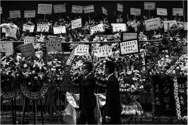 场面万人空巷,一名在场的警员也说︰“先人的朋友众多,前来致祭者不绝,是近年少见。”是夜,丧礼以道教仪式进行,各路江湖大哥在坛前上香,烟火袅袅、在道教的哀乐声中,各人忆起旧时代香港刀光剑影的江湖岁月。