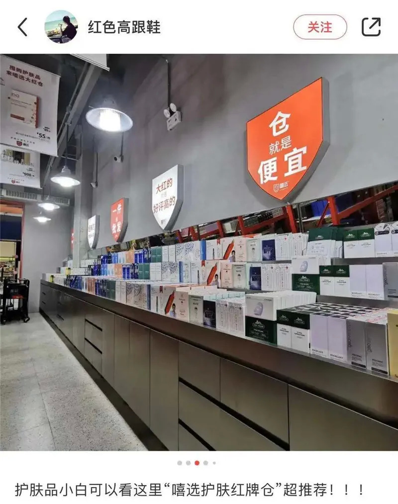 2020年12月4日,嘻选护肤红牌仓在合肥市万达广场开出了第一家门店,与THE COLORIST调色师、WOW COLOUR等以彩妆产品为主的集合店不同,嘻选聚焦于护肤类产品,店内覆盖了来自国内外的100多个护肤品牌,包括雅诗兰黛、SK-II、LAMER、olay、WIS、悦诗风吟、大宝、美加净等。