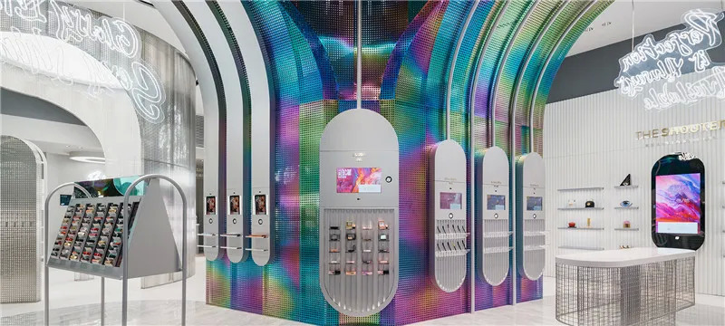 NOISY Beauty团队研发了一套ERP系统,通过数据和模型,可以对库存、销售和陈列位更改等业务做出预测;在B+油罐“未来科技”的视觉风格中,其遍布全店的触摸屏和传感器使整个门店成为了一个巨型的数据收集装置。