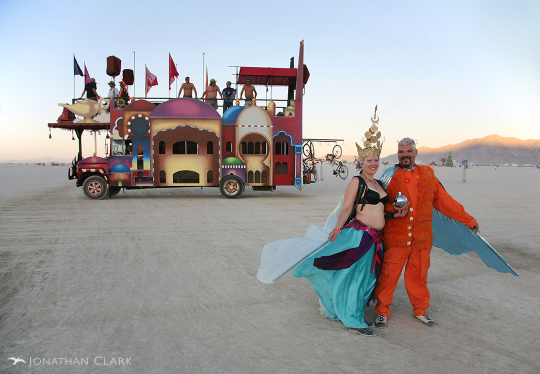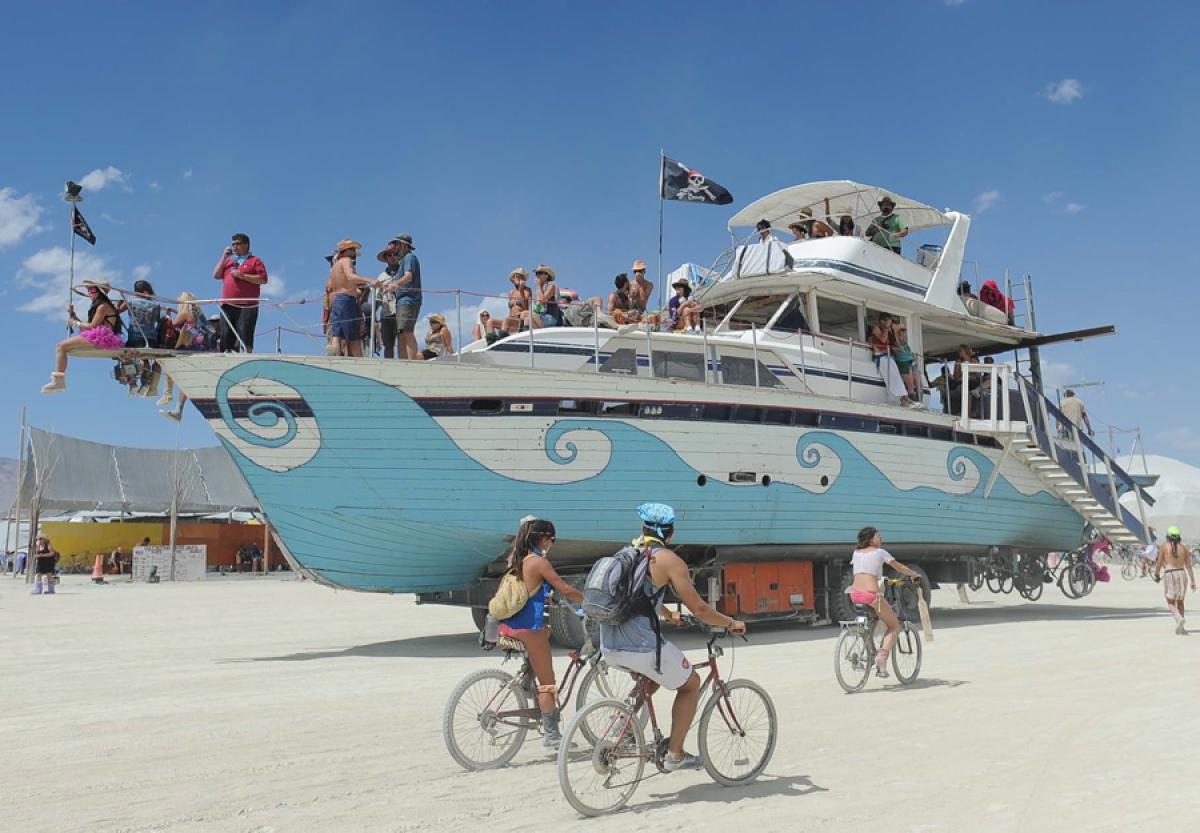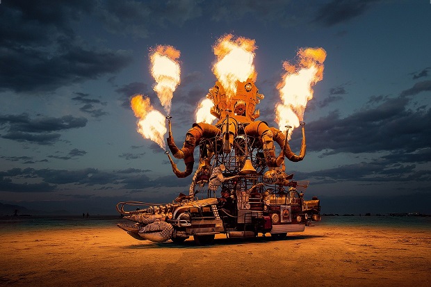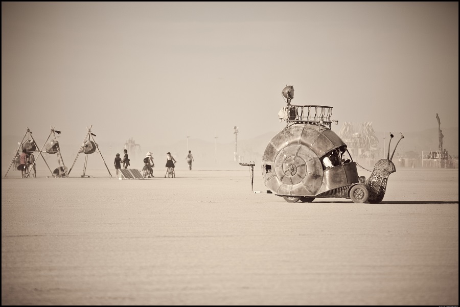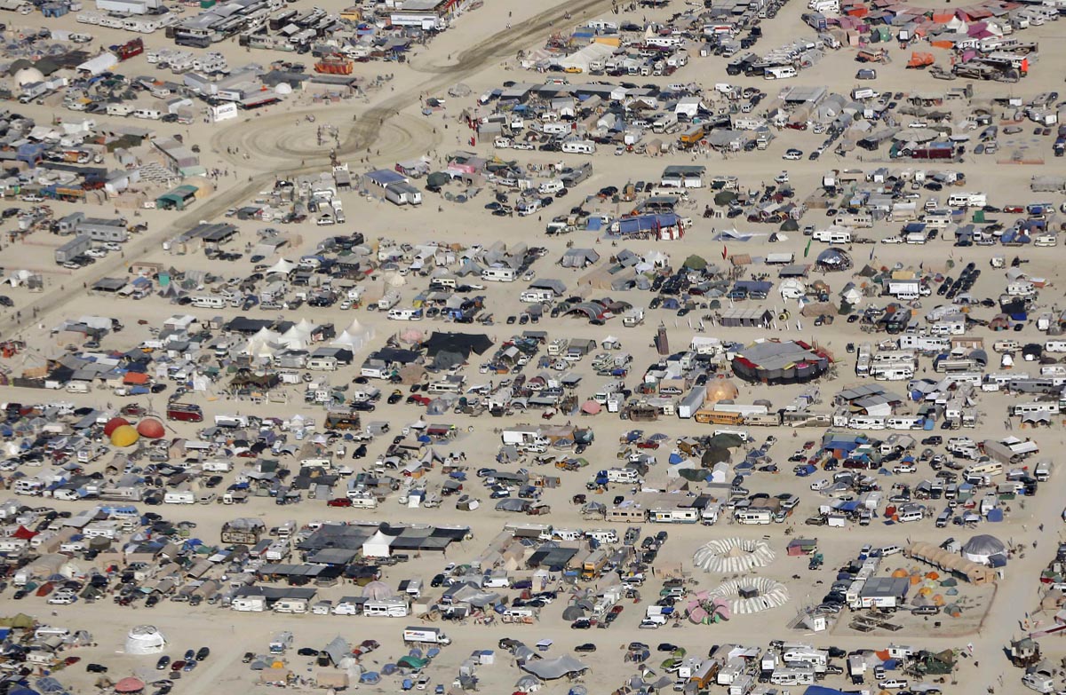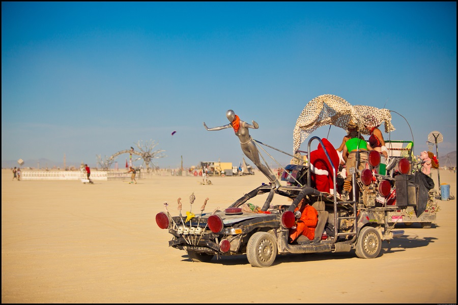 每年,成千上万的参与者都会聚集在美国内华达州的黑石沙漠(Black Rock Desert),来打造一座叫做黑石城的城市,一个充斥着艺术、激进的自我表达、以及彻底自力更生的社区,以各种异想天开与荒诞的形式来“表现自己”。在九天后,所有人就会离开,带走沙漠里的所有物品和垃圾,不留下任何痕迹,让这座城市彻底消失。而之所以会叫做Burning Man,就是因为周六晚上会有焚烧巨大人形木肖像的仪式。